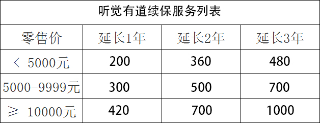 所以,根據(jù)用戶朋友的需求,聽覺有道提供付費延長保修期的服務(wù)。