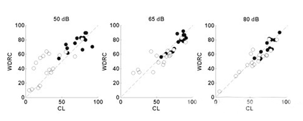 <span style="font-size:16px;"> 重度聽力損失是500Hz、1000Hz、2000Hz和4000Hz平均聽閾在61dB HL和80dB HL之間的聽力損失。重度聽損患者更趨向于:</span></p><p><span style="font-size:16px;"> (1)聽力損失時(shí)間較久;</span></p><p><span style="font-size:16px;"> (2)有助聽器佩戴史;</span></p><p><span style="font-size:16px;"> (3)言語(yǔ)分辨率較低;</span></p><p><span style="font-size:16px;"> (4)噪音環(huán)境中交流困難。</span></p><p><span style="font-size:16px;"> 1、重度聽力損失的特點(diǎn)</span></p><p><span style="font-size:16px;"> 60dB HL是單純外毛細(xì)胞損傷和內(nèi)外毛細(xì)胞共同損傷的分界點(diǎn),內(nèi)毛細(xì)胞受損預(yù)示著重度聽力損失,這類患者的頻率選擇能力降低,在相關(guān)頻率范圍內(nèi)難以分辨兩種聲音。這是噪聲環(huán)境下交流困難的主要原因。</span></p><p><span style="font-size:16px;"> 簡(jiǎn)單來(lái)說(shuō),頻率選擇能力越低,自身降噪能力越差,噪聲下識(shí)別信號(hào)的能力也就越差。</span></p><center><span style="font-size:16px;"><img alt="" src="/upfiles/20181016012659501.png" width="440" height="250" /></span></center><p></p><p><span style="font-size:16px;"> 2、選擇合適的放大策略</span></p><p><span style="font-size:16px;"> 反饋抑制:這項(xiàng)技術(shù)在傳統(tǒng)方法的基礎(chǔ)上有更好的減少嘯叫的效果。</span></p><p><span style="font-size:16px;"> 指向性麥克風(fēng):有指向性功能的助聽器可以明顯提高信噪比(SNR)。現(xiàn)在自適應(yīng)指向性麥克風(fēng)廣泛地應(yīng)用于大功率耳背機(jī)中。</span></p><p><span style="font-size:16px;"> 對(duì)于噪聲下言語(yǔ)交流困難的重度聽力損失患者,選配帶有指向性麥克風(fēng)的助聽器效果顯著。</span></p><p><span style="font-size:16px;"> 聽力學(xué)家對(duì)重度聽損人士的指向性麥克風(fēng)做過(guò)獲益度測(cè)試,發(fā)現(xiàn)平均言語(yǔ)識(shí)別能力提升了14%。</span></p><p><span style="font-size:16px;"> 重度聽損患者使用指向性功能時(shí)必須保證一定低頻增益,否則他們會(huì)感覺(jué)聲音不夠洪亮。</span></p><center><span style="font-size:16px;"><img alt="" src="/upfiles/201810160127134771.png" width="440" height="250" /></span></center><p></p><p><span style="font-size:16px;"> 寬動(dòng)態(tài)范圍壓縮線路(WDRC):</span></p><p><span style="font-size:16px;"> 如下圖,白點(diǎn)是重度聽力損失患者的輔音識(shí)別得分,黑點(diǎn)是輕度至中度聽損患者的輔音識(shí)別得分;每位受試者佩戴四通道的耳背機(jī),驗(yàn)配采用NAL公式;測(cè)試言語(yǔ)聲強(qiáng)度分別為50dB SPL、65dB SPL和80dB SPL;比較WDRC和線性輸出壓縮限制(CL)兩種線路的得分。</span></p><center><span style="font-size:16px;"><img alt="" src="/upfiles/201810160127198326.png" width="600" height="240" /></span></center><p></p><p><span style="font-size:16px;"> 等分位于對(duì)角線附近代表兩種處理方式效果相似,得分位于對(duì)角線上方表示W(wǎng)DRC線路效果更好,而下方則表示CL線路效果更好。</span></p><p><span style="font-size:16px;"> 對(duì)重度聽損患者來(lái)說(shuō),輸入輕聲和中等聲時(shí)WDRC線路比CL線路效果更好;輸入響聲時(shí)兩種線路的區(qū)別并不大。所以使用WDRC線路可以獲得比CL線路更高的言語(yǔ)識(shí)別率。</span></p><p><span style="font-size:16px;"> 壓縮速度:壓縮越深可聽度越高,因?yàn)榛颊呖梢月牭礁鼘挼穆曇繇懚确秶?lt;/span></p><p><span style="font-size:16px;"> 快反應(yīng)壓縮(起效和釋放時(shí)間很短)可以降低元音(響度較大)增益并提高輔音(響度較小)增益,從而提高可聽度。</span></p><p><span style="font-size:16px;"> 所以理論上來(lái)講,對(duì)于重度聽損人士,使用多通道助聽器、低壓縮拐點(diǎn)、高壓縮比、音節(jié)壓縮,可以最大程度提高驗(yàn)配效果。</span></p><center><span style="font-size:16px;"><img alt="" src="/upfiles/201810160127304305.png" width="600" height="500" /></span></center><p></p><p><span style="font-size:16px;"> 但壓縮越深就意味著有聲音失真越大,音節(jié)壓縮丟失了重要言語(yǔ)信息,導(dǎo)致輔音分辨不清。若要保留這些信息,則需要慢反應(yīng)壓縮(起效和釋放時(shí)間較長(zhǎng))。</span></p><p><span style="font-size:16px;"> 最好的情況是在提高可聽度的同時(shí)還保證信號(hào)不失真,但目前很難實(shí)現(xiàn),找到二者的平衡點(diǎn)是最佳的選配方案。</span></p><center><span style="font-size:16px;"><img alt="" src="/upfiles/20181016012736476.png" width="440" height="250" /></span></center><p></p><p><span style="font-size:16px;"> 上圖為一組重度聽力損失患者選配快速和慢速WDRC線路的言語(yǔ)識(shí)別率對(duì)比。</span></p><p><span style="font-size:16px;"> 在輸入聲級(jí)為50和65 dB SPL時(shí),快反應(yīng)壓縮線路的受試者得分明顯比慢反應(yīng)壓縮線路的受試者差;在80 dB SPL輸入聲級(jí)下則并無(wú)明顯差別。</span></p><p><span style="font-size:16px;"> 對(duì)輕度和中度聽力損失患者來(lái)說(shuō),無(wú)論何種輸入聲級(jí),兩種壓縮方式的得分都沒(méi)有明顯差別(并未在圖中顯示)。</span></p><p><span style="font-size:16px;"> 對(duì)極重度聽力損失患者來(lái)說(shuō),可聽度比其他任何信息都重要,快反應(yīng)壓縮線路效果比慢反應(yīng)壓縮線路更好。</span></p><p><span style="font-size:16px;"> 綜上所述,在使用多通道WDRC線路助聽器前提下,一定程度的可聽度是必須的,在這個(gè)基礎(chǔ)上要追