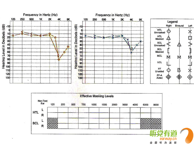 <span style="font-size:16px;"> 首先聽覺有道跟大家解釋一下純音測聽的定義以及臨床意義。純音測聽包括氣導聽閾測試(AC)和骨導聽閾測試(BC),以耳機及骨導振子給聲,反應受試者在安靜環境下能夠聽到的各個頻率的最小聲音的聽力級(氣導頻率范圍125-8000Hz,骨導250-4000Hz)。它是目前能準確反映聽敏度的主觀行為測試方法之一,在臨床上是最基本最重要的聽力檢查方法。</span></p><p><span style="font-size:16px;"><br /></span></p><p style="text-align: center;"><span style="font-size:16px;"><img src="/upfiles/201803010200415958.jpg" align="middle" alt="" /><br /></span></p><p style="text-align: center;"><span style="font-size:16px;"><br /></span></p><p><span style="font-size:16px;"> 先整體看一下聽力圖,它的橫坐標是純音的頻率,縱坐標表示的是聽力級(單位為db HL),從上往下看數字是變大的。0表示聽力零級,簡單地說就是科研人員測了很多聽力正常男女的聽力,以他們能聽到的最小聲音作為聽力零級。所以如果你的聽力是正常的話,聽力圖上的閾值曲線應該在零附近浮動,如果你聽力超常,那就在0以上也就是為負值了。如果你聽力下降,那線就往下走,越往下就說明聽力損失得越多。從生活常識上理解,所謂聽閾聽閾,閾值越低表示你能聽到越小的聲音,聽力就越好,閾值越高,聽力越差。</span></p><p><span style="font-size:16px;"> 接著說一下聽力圖上的圈圈叉叉代表的意思。叉叉表示左耳的氣導聽閾,圈圈表示右耳氣導,開口向左的尖括號表示左耳骨導,開口向右的表示右耳骨導。旁邊的masked表示加掩蔽之后的聽力。</span></p><p><span style="font-size:16px;"> 為什么要加掩蔽呢?舉個例子:你右耳聽力比左耳好,當你左耳給聲強度很大,會出現你左耳其實沒聽見但右耳偷聽到了的情況,這時你就會反應,但是這時你的反應能代表左耳的聽閾嗎?肯定比你實際聽閾要好,所以測聽人員會在你右耳加噪聲,不讓你右耳偷聽左耳的聲音,這樣測出來的左耳聽力稱掩蔽之后的聽閾。左耳掩蔽之后的氣導用小正方形來表示。同理,右耳掩蔽用小三角形表示。骨導也需要掩蔽。左耳掩蔽后骨導用向左的方括號表示,右耳用向右的方括號表示。</span></p><p><span style="font-size:16px;"> 最后我們該如何分析聽力圖。簡單地說,氣導的傳聲路徑包括外中內耳以及神經部分,骨導只包括內耳和神經部分,因此出現骨氣導差則表明聽覺通路上有外中耳病變。考慮到各種誤差因素,一般認為骨氣導相差10db HL屬于正常范圍。根據骨氣導的關系可以將聽力損失分為傳導性聽力損失、感音神經性聽力損失以及混合性聽力損失。骨氣導差大于10,且骨導在正常范圍為傳導性聽損;骨氣導一致且都在正常范圍以外為感音神經性聽損;骨氣導差大于10,骨導在正常范圍之外為混合性聽損。</span></p><p><span style="font-size:16px;"> 當然,如果想進一步定位聽力診斷結果,還需要結合其他的一些測試如聲導抗、ABR、耳蝸電圖、耳聲發射、40Hz、影像學檢查等。</span></p><p><span style="font-size:16px;"> 更多詳情請登錄www.xhfkj.cn。</span></p>" />