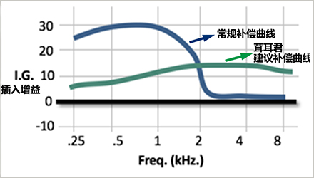 本文根據(jù)多年的臨床聽力學經(jīng)驗,以及國內(nèi)外的研究結(jié)果,分享復雜案例中上升型聽力損失的調(diào)試技巧。</p><p> 什么是上升型聽力損失?</p><p> 上升型聽力損失,顧名思義,指的是聽力損失從低頻到高頻逐漸降低,聽力圖上呈現(xiàn)上升“爬坡”的曲線形狀。</p><p> </p><center><img alt="" src="/upfiles/201904220143022080.png" width="440" height="250" /></center><p></p><p> 在本文中特指那些低頻為中度聽力損失,中高頻聽力正?;蚪咏5?,其中不包含傳導性聽力損失和混合型聽力損失,單指感音神經(jīng)性聽力損失。</p><p> 這類聽力損失,為什么按照聽力圖顯示的損失,多補償?shù)皖l反而沒用呢?到底應(yīng)該怎么調(diào)呢?</p><p> 先看一個有趣的循證測試</p><p> 在講述如何處理上升型聽力損失之前,我們先來看一個有趣的實驗。</p><p> 這項研究共有6名受試者進行了測試,其中5名受試者在高頻時聽力正常或接近正常,而低頻時聽力損失為中等程度,1名受試者為V型聽力圖。也就是說絕大部分人符合本文所講的上升型聽力損失。</p><p> 首先對6名受試者進行低通、高通、寬頻、K-Bass放大。也就是說分別給予如下圖的增益:</p><p> </p><center><img alt="" src="/upfiles/201904220143074763.png" width="440" height="250" /></center><p></p><p> 四種放大方案的最大區(qū)別就在于低頻和高頻增益各有不同。</p><p> 在低通放大中,低頻有一定的增益,而高頻則有一些插入缺失(負增益);在高通放大中,低頻增益為零,高頻增益最多;在寬頻放大中,低、高頻都有增益,其中低頻有較大增益高頻,高頻有相對較少的增益;在K-Bass放大中,低頻增益明顯,高頻增益為零,剛好彌補插入缺失。</p><p> 然后分別在無增益以及四類放大情況下進行言語清晰度的評估,結(jié)果如下圖所示。</p><p> </p><center><img alt="" src="/upfiles/201904220143125111.png" width="300" height="340" /></center><p></p><p> 我們發(fā)現(xiàn)沒有補償(UA),寬頻(BB),高通(HP),K-Bass(KB)的平均言語清晰度都大于低通(LP)的平均言語清晰度。</p><p> 此外,分別測試每個受試者在低通(LP)和其他放大方案下的高頻輔音辨別率得分,結(jié)果顯示,其他放大方案都高于低通(LP)的輔音辨別率得分,如下圖所示。</p><p> </p><center><img alt="" src="/upfiles/201904220143177827.png" width="300" height="335" /></center><p></p><p> 是不是疑惑?</p><p> 看到上述實驗,相信很多驗配師肯定會很疑惑:為什么只給低頻補償?shù)男Ч亲畈畹哪?對于上升型的聽力損失難道不是應(yīng)該好好補償?shù)皖l聽力損失嗎?</p><p> 解疑之前,不妨再看個“假如”:</p><p> 假如你在看電視,出現(xiàn)一些你非常感興趣的信息,你是不是會提高音量去仔細傾聽呢?</p><p> </p><center><img alt="" src="/upfiles/20190422014323161.png" width="440" height="250" /></center><p></p><p> 答案是肯定的,遇到我們感興趣的信息,我們常常會“豎起耳朵”仔細聆聽。</p><p> 我們都知道言語信息通常分布在中高頻率,所以要想聽到我們感興趣的言語信息,我們可以適當調(diào)高電視機音量,即便我們的聽力是正常的。</p><p> 回到助聽器驗配,可想而知,對于配戴助聽器的弱聽人士來說,考慮到高頻的插入缺失,也的的確確需要給予其一定的聽力補償。</p><p> 但是有些驗配師可能會想,上升型聽力損失的高頻接近正常,高頻增益過大會不會帶來不好的影響呢?</p><p> 其實不然,只要在弱聽人士的聽覺動態(tài)范圍內(nèi)增加高頻增益,就不會帶來不適;這就相當于聽力正常者平??措娨晻r增加音量,能讓我們更好地聽到自己想要聽到的東西。</p><p> 簡單而高效的調(diào)試技巧</p><p> 初次驗配時:</p><p> 在處理上升型聽力損失時,我們通常首先會看到如下圖中的藍色曲線,這似乎也是最符合常理的。</p><p> </p><center><img alt="" src="/upfiles/201904220143288699.png" width="440" height="250" /></center><p></p><p> 但是,我們前面介紹了低通、高通、寬頻、K-Bass放大,結(jié)果表明,低通放大給足低頻,高頻不補償?shù)男Ч畈睢?lt;/p><p> 所以,基于循證驗配,在調(diào)試上升型聽力損失時,建議:在高頻給予至少10dB-15dB的插入增益,確保弱聽人士在高頻能夠聽到聲音,并適當減少低頻增益,如下圖中的綠色補償曲線。</p><p> </p><center><img alt="" src="/upfiles/20190422014334476.png" width="440" height="250" /></center><p></p><p> 不必糾結(jié)高頻聽力正常會不會補償不妥,目前的多通道非線性助聽器已經(jīng)可以對高強度輸入進行防范管控,所以不用擔心弱聽人士會因高頻的補償而感到不適。</p><p> 相反,你甚至會驚訝,弱聽人士突然之間聽得更加清楚了。</p><p> 精細微調(diào)時:</p><p> 另外,在接下來的微調(diào)時,每個弱聽人士的聆聽需求可能都不一樣。 有些可能想要更多的低頻能量,有些可能喜歡寬頻補償,有些可能一點低頻補償不需要,但是,幾乎沒有弱聽人士想要降低高頻增益。</p><p> 很多時候,弱聽人士都希望把高頻再多補償點,以提高言語清晰度。</p><p> 所以,在此建議可以逐步減少低頻增益(部分可適當增加低頻),增加高頻增益,慢慢調(diào)試,直到弱聽人士覺得合適,如下圖綠色曲線的紅箭頭所示。</p><p> </p><center><img alt="" src="/upfiles/201904220143397445.png" width="440" height="250" /></center><p></p><p> 在這一環(huán)節(jié)中,微調(diào)的最終目的就是達到更高的言語清晰度。</p><p> 要用高級信號處理技術(shù)嗎?</p><p> 除了上述的增益調(diào)節(jié),對于上升性聽力損失來說,高級信號處