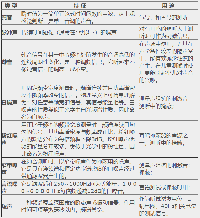 1. 描述聲波的常見物理量</p><p> 1)頻率:單位時間內物體振動的次數(次/秒),用Hz表示;</p><p> 2)強度和振幅:振幅是描述物體振動時傳遞能量的大小,單位是分貝dB;</p><p> 3)分貝:人耳的聽聲范圍太大,引起聽閾的最小聲強與引起痛覺的最小聲強相差近100萬倍,不易計數,因此以某一絕對聲強為基準(20μPa),將聲強的絕對值轉換為與該基準聲強的比值(聲強的級),再取以10為底的對數,最終計數單位變成了貝爾(Bell),為了更細的分級,現在普遍采用1/10B,即分貝(dB)為計數單位。</p><p> </p><center><img alt="" src="/upfiles/201906100126248309.png" width="423" height="154" /></center><p></p><p style="text-align: center;">音波示意圖</p><p style="text-align: left;"> 4)相位:指聲源相對于聽者的方向或位置,當頻率相同的聲音同時到達某點時,如果相位相同,其結果是使聲音顯得更響;當聲音一前一后分別到達時,相位出現部分抵消,其結果是使聲音顯得更輕,相位是確定聲源位置的依據;</p><p> 5)聲壓級(SPL):是用對數級的辦法來表示聲壓的相對大小,單位是dB SPL。計算公式為Lp(SPL)=20lg(P/P0),P0為基準聲壓,在空氣中取人耳1000Hz處能聽到的最小聲壓20μPa。</p><p> 2. 聽力學中常用的聲音信號</p><p> 下列聲信號在聽力測試、聲場測試、助聽器檢測等過程中經常被用到的。</p><p> </p><center><img alt="" src="/upfiles/201906100126317113.png" width="554" height="600" /></center><p></p><p> 更多詳情請登錄聽覺有道助聽器www.xhfkj.cn</p>" />