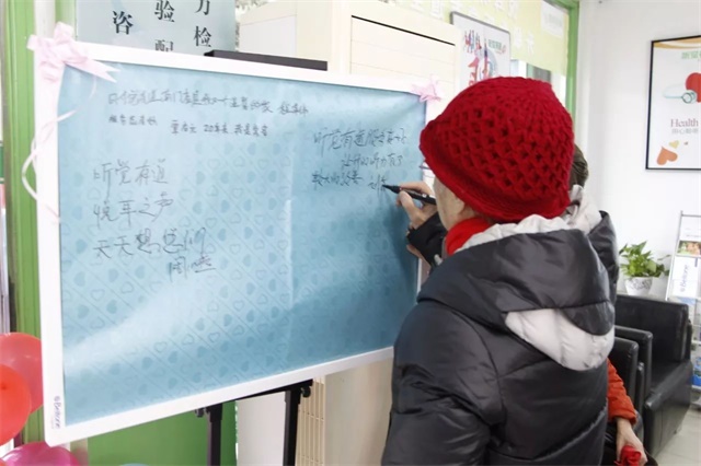 <span style="font-size:16px;"> 2017年12月8日,聽覺(jué)有道成都南門服務(wù)中心(原悅耳聽覺(jué)成都南門中心)20周歲啦!</span></p><p style="text-align: center;"><span style="font-size:16px;"> </span></p><center><img src="/upfiles/201801230505336847.jpg" alt="" /><br /></center><p></p><p style="text-align: center;"><span style="font-size:16px;"> ▲ 門店驗(yàn)配師與新老用戶大合影</span></p><p style="text-align: center;"><span style="font-size:16px;"> </span></p><center><img src="/upfiles/201801230505391017.jpg" alt="" /><br /></center><p></p><p style="text-align: center;"><span style="font-size:16px;"> ▲ 用戶到店簽到</span></p><p style="text-align: center;"><span style="font-size:16px;"> </span></p><center><img src="/upfiles/201801230505511814.jpg" alt="" /><br /></center><p></p><p style="text-align: center;"><span style="font-size:16px;"> ▲ 用戶陸續(xù)到店入座</span></p><p style="text-align: center;"><span style="font-size:16px;"> </span></p><center><img src="/upfiles/201801230506279812.jpg" alt="" /><br /></center><p></p><p style="text-align: center;"><span style="font-size:16px;"> ▲ 為用戶們準(zhǔn)備的點(diǎn)心和水果</span></p><p style="text-align: center;"><span style="font-size:16px;"> </span></p><center><img src="/upfiles/201801230506592453.jpg" alt="" /><br /></center><p></p><p style="text-align: center;"><span style="font-size:16px;"> ▲ 為用戶準(zhǔn)備的精美禮品</span></p><p style="text-align: center;"><span style="font-size:16px;"> </span></p><center><img src="/upfiles/201801230507068624.jpg" alt="" /><br /></center><p></p><p style="text-align: center;"><span style="font-size:16px;"> ▲ 專業(yè)培訓(xùn)師王斌為用戶們講課</span></p><p style="text-align: center;"><span style="font-size:16px;"><br /></span></p><p style="text-align: center;"><span style="font-size:16px;"> 此次課程內(nèi)容主要圍繞:“聆聽技巧指導(dǎo)”和“聽力損失預(yù)防”和展開。</span></p><center><img src="/upfiles/201801230507144214.jpg" alt="" /><br /></center><p></p><p style="text-align: center;"><span style="font-size:16px;"> ▲ 王斌老師與用戶親切交談</span></p><p style="text-align: center;"><span style="font-size:16px;"> </span></p><center><img src="/upfiles/201801230507214663.jpg" alt="" /><br /></center><p></p><p style="text-align: center;"><span style="font-size:16px;"> ▲ 培訓(xùn)師王斌、店長(zhǎng)王蕾與用戶合影留念</span></p><p style="text-align: center;"><span style="font-size:16px;"><br /></span></p><p style="text-align: center;"><span style="font-size:16px;"> 合影留念的這位用戶跟培訓(xùn)師王斌可謂是緣分不淺~她和培訓(xùn)師王斌的母親是多年的老同事,多年未見(jiàn)今日卻在此重逢!情,讓我們聚于此。</span></p><p style="text-align: center;"><span style="font-size:16px;"> </span></p><center><img src="/upfiles/201801230507285900.jpg" alt="" /><br /></center><p></p><p style="text-align: center;"><span style="font-size:16px;"> ▲ 用戶與驗(yàn)配師朱曉軍合影留念</span></p><p style="text-align: center;"><span style="font-size:16px;"> </span></p><center><img src="/upfiles/201801230507383932.jpg" alt="" /><br /></center><p></p><p style="text-align: center;"><span style="font-size:16px;"> ▲ 用戶與店長(zhǎng)王蕾合影留念</span></p><p style="text-align: center;"><span style="font-size:16px;"> </span></p><center><img src="/upfiles/201801230508077287.jpg" alt="" /><br /></center><p></p><p style="text-align: center;"><span style="font-size:16px;"> ▲ 用戶與驗(yàn)配師們合影留念</span></p><p style="text-align: center;"><span style="font-size:16px;"><br /></span></p><p style="text-align: center;"><span style="font-size:16px;"> 點(diǎn)蠟燭、唱生日歌、切蛋糕環(huán)節(jié)</span></p><p style="text-align: center;"><br /></p><center><img src="/upfiles/20180123050814975.jpg" alt="" /><br /></center><p></p><p style="text-align: center;"><span style="font-size:16px;"> ▲ 店長(zhǎng)王蕾親自為用戶分發(fā)蛋糕</span></p><p style="text-align: center;"><span style="font-size:16px;"><br /></span></p><p style="text-align: center;"><span style="font-size:16px;"> 用戶為南門服務(wù)中心送上祝福</span></p><p style="text-align: center;"><br /></p><center><img src="/upfiles/201801230508271731.jpg" alt="" /><br /></center><p></p><p style="text-align: center;"><span style="font-size:16px;"> </span></p><center><img src="/upfiles/201801230508342844.jpg" alt="" /><br /></center><p></p><p style="text-align: center;"><span style="font-size:16px;"> </span></p><center><img src="/upfiles/201801230508426099.jpg" alt="" /><br /></center><p></p><p style="text-align: center;"><span style="font-size:16px;"> </span></p><center><img src="/upfiles/201801230508483483.jpg" alt="" /><br /></center><p></p><p style="text-align: center;"><span style="font-size:16px;"> </span></p><center><img src="/upfiles/201801230508542561.jpg" alt="" /><br /></center><p></p><p style="text-align: center;"><span style="font-size:16px;"> </span></p><center><img src="/upfiles/201801230508593450.jpg" alt="" /><br /></center><p></p><p style="text-align: center;"><span style="font-size:16px;"> </span></p><center><img src="/upfiles/201801230509041756.jpg" alt="" /><br /></center><p></p><p style="text-align: center;"><span style="font-size:16px;"> </span></p><center><img src="/upfiles/2018012305091028.jpg" alt="" /><br /></center><p></p><p style="text-align: center;"><span style="font-size:16px;"> </span></p><center><img src="/upfiles/201801230509159023.jpg" alt="" /><br /></center><p></p><p style="text-align: center;"><span style="font-size:16px;"> ▲ 用戶滿滿的祝福讓我們很感動(dòng)</span></p><p style="text-align: center;"><span style="font-size:16px;"><br /></span></p><p style="text-align: center;"><span style="font-size:16px;"> 從悅耳聽覺(j