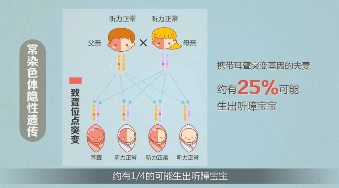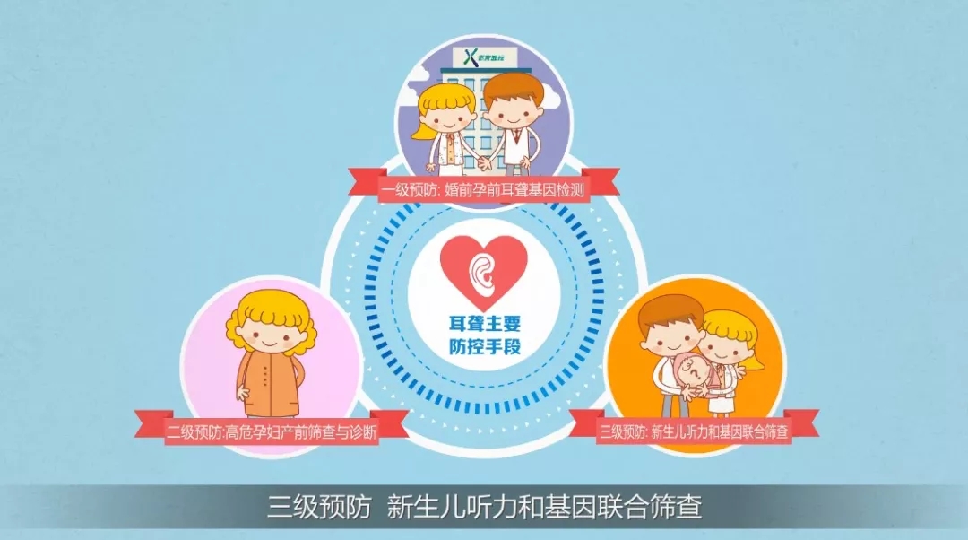 <iframe width="640px" height="380px" frameborder="0" src="https://v.qq.com/txp/iframe/player.html?vid=p084275qasv" allowfullscreen="true"></iframe></p><p> 中國,近14億的人口中就有著2780萬人,倍受聽力障礙的煎熬。</p><p> <strong>每年有6萬余名聽障兒童</strong></p><p> 中國每年有6萬余名新生兒由于遺傳、藥物、感染、疾病、環(huán)境等方面的原因成為聽障兒童,其中有60%的聽力障礙來自遺傳,成為最大的致聾因素,每100個聽力正常的父母就有6個攜帶遺傳性耳聾突變基因,攜帶者會傳遞給孩子引發(fā)聾病。</p><p style="text-align: center;"><img src="/upfiles/201903050159331282.jpg" width="640" alt="" /><br /></p><p style="text-align: center;"><img src="/upfiles/20190305020124203.jpg" width="640" alt="" /><br /></p><p> 聽障群體是一個龐大且每年都在增長的弱勢群體,耳聾一旦形成便不可恢復(fù),一個聽障寶寶的誕生,將會給家庭和社會帶來嚴(yán)重的經(jīng)濟(jì)負(fù)擔(dān)和不可估量的精神損失。</p><p> <strong>遺傳成為最大的導(dǎo)致耳聾的因素</strong></p><p> 遺傳性耳聾的遺傳方式多數(shù)為:“常染色體隱性遺傳”和“線粒體母系遺傳”常染色體隱性遺傳,雙方聽力正常的攜帶者,約有1/4的可能生出聽障寶寶。線粒體基因突變屬于母系遺傳。</p><p style="text-align: center;"><img src="/upfiles/201903050212503998.jpg" width="640" alt="" /><br /></p><p style="text-align: center;"><img src="/upfiles/201903050213053857.jpg" width="640" alt="" /><br /></p><p> 如果媽媽攜帶藥物耳聾基因突變,她的孩子無論男孩還是女孩,一旦用藥物不當(dāng),便會致聾!</p><p> <strong>讓“靜音鍵”不再被按下</strong></p><p style="text-align: center;"><strong><img src="/upfiles/201903050213245111.jpg" width="640" alt="" /><br /></strong></p><p> 耳聾目前不可根治,但可防可控。</p><p> 主要防控手段有:</p><p> 一級預(yù)防:婚前孕前耳聾基因檢測;</p><p> 二級預(yù)防:高危孕婦產(chǎn)前篩查與診斷;</p><p> 三級預(yù)防:新生兒聽力和基因聯(lián)合篩查。</p><p style="text-align: center;"><img src="/upfiles/201903050213445460.jpg" width="640" alt="" /><br /></p><p> 耳聾基因篩查不僅能及早發(fā)現(xiàn)先天遺傳性聽障寶寶,及早采取干預(yù)和康復(fù)措施,避免因聽力障礙影響語言發(fā)育能力,更重要的是,能發(fā)現(xiàn)藥物性和遲發(fā)性耳聾高危人群。</p><p> 第一時(shí)間為個體及其家族成員提供明確的用藥指導(dǎo)和生活指南,降低后天錯誤用藥或不良的環(huán)境因素導(dǎo)致的耳聾風(fēng)險(xiǎn)。對于聽障群體還可從分子水平上明確病因,及早進(jìn)行助聽器或電子耳蝸植入的康復(fù)治療,避免因聾致啞導(dǎo)致智力缺陷,指導(dǎo)聽障夫婦優(yōu)生優(yōu)育,防止再次生育聽障寶寶。</p><p> 愛耳防聾,從基因檢測開始!</p>" />